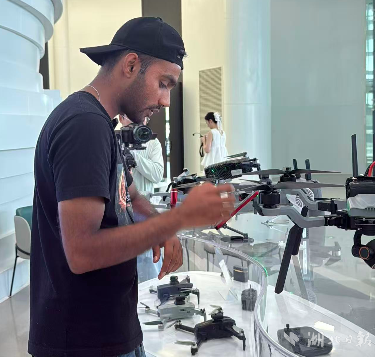 8月26日,巴基斯坦的外国主持人阿布(Abu Abu)在中国(Ezhou)跨境电子商务公园公园(Ezhou)跨境电子商务公园公园(Ezhou)的新闻工作者在8月26日将无人机介绍给了北美英语的北美消费者,在蒂克托克实时广播室。