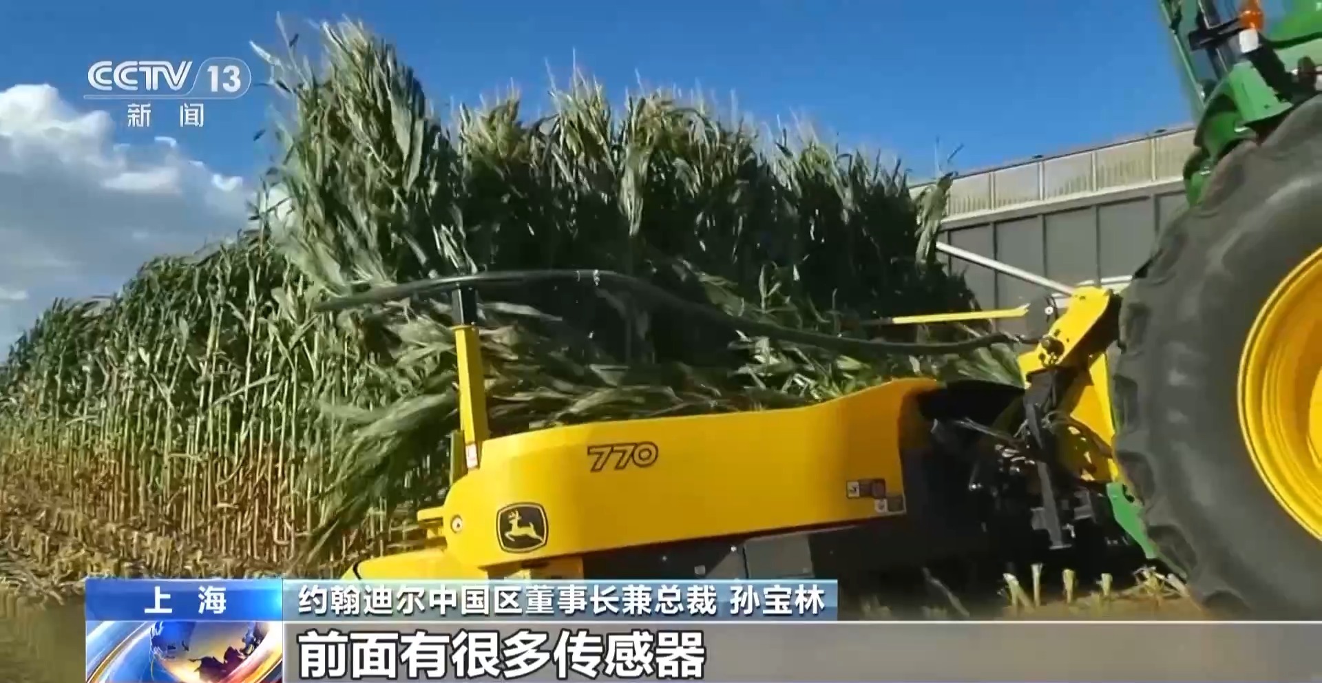 约翰迪尔中国董事长兼总裁孙宝林:我们的农业机械正在向智能化发展。一个操作手柄即可实现全部机械操作,收获过程中各种饲料原料自动自动化检测然后上传到牧场平台。